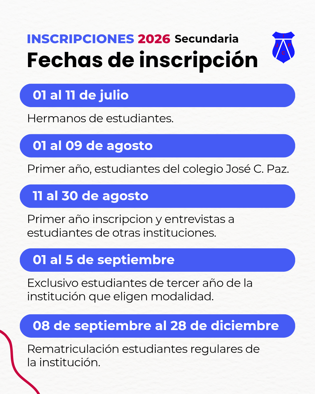 Ya están disponibles las fechas de inscripción para el ciclo lectivo 2026 del Nivel Secundario.